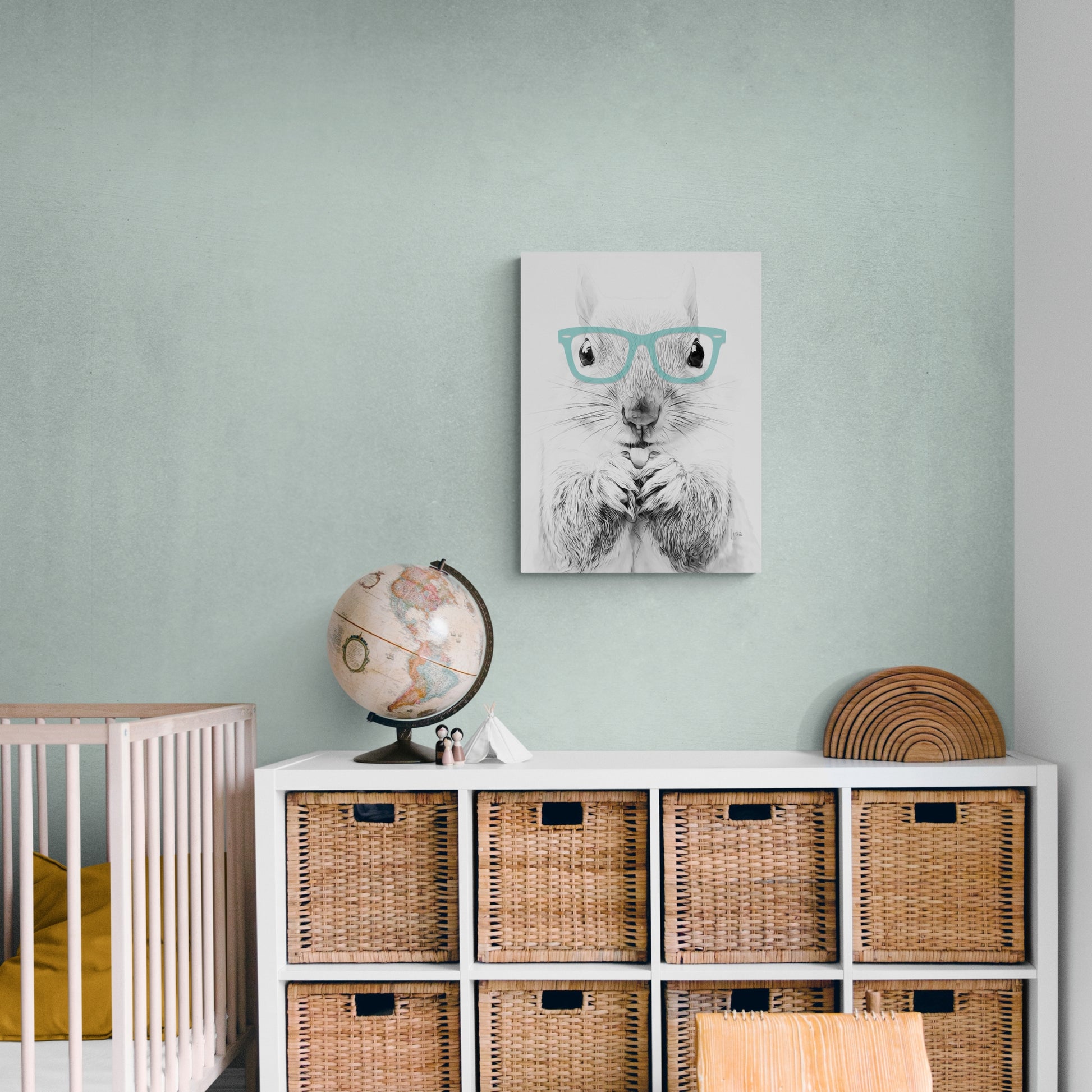 Curious Squirrel in Oversized Aqua Glasses Canvas Art, 15" x 20"