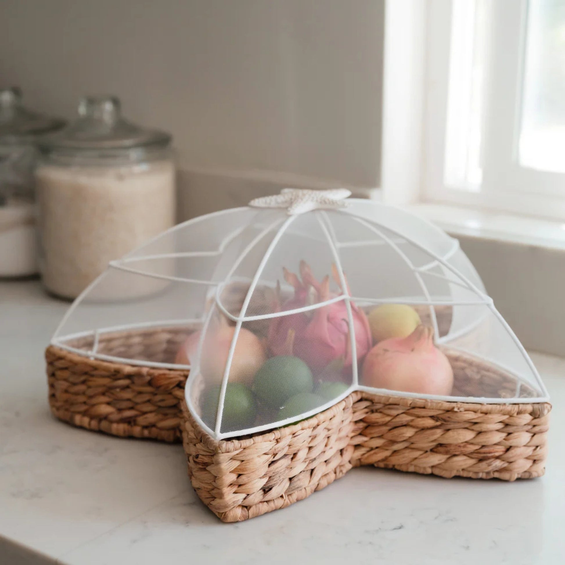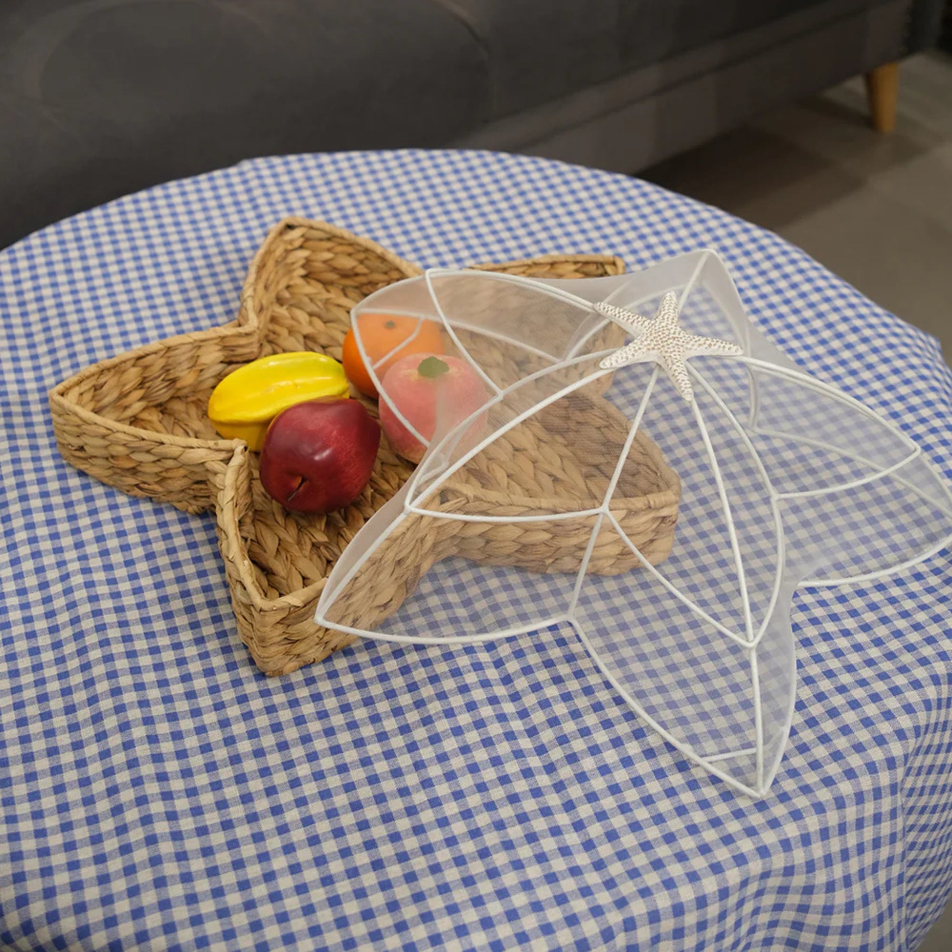 Handwoven Water Hyacinth Star Tray with Mesh Food Cover